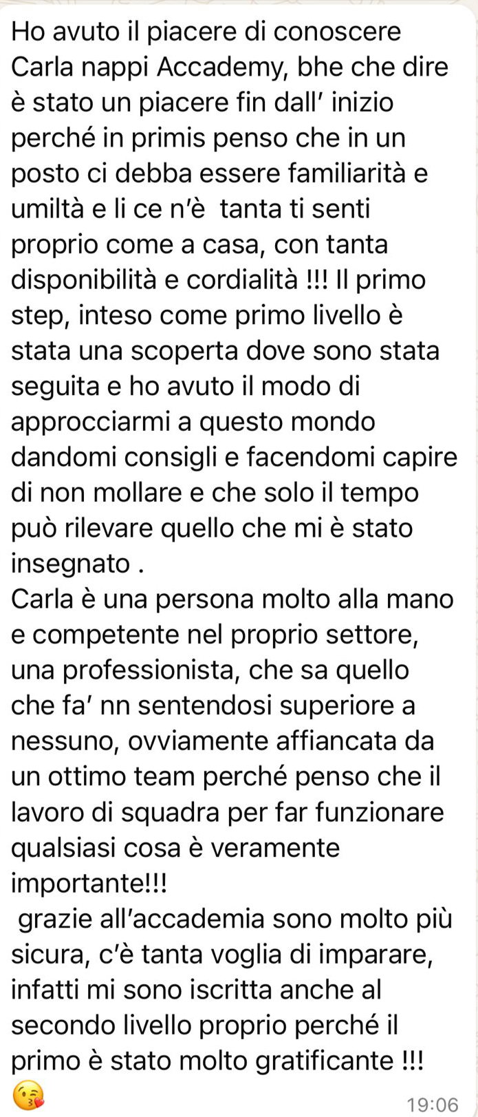 Dopo oltre dieci anni di esperienza e centinaia di allieve formate, Carla Nappi ha creato un’Accademia che forma vere professioniste.